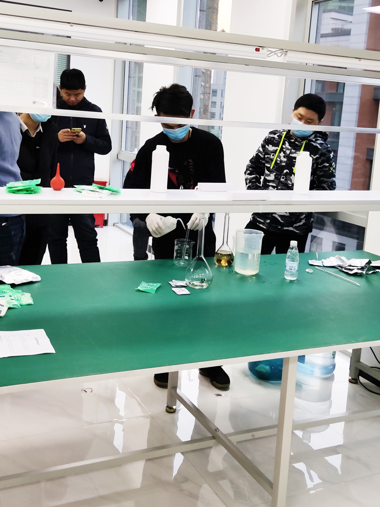 销售工程师郄经理讲解配液后,学员们自己也动手操作起来~
