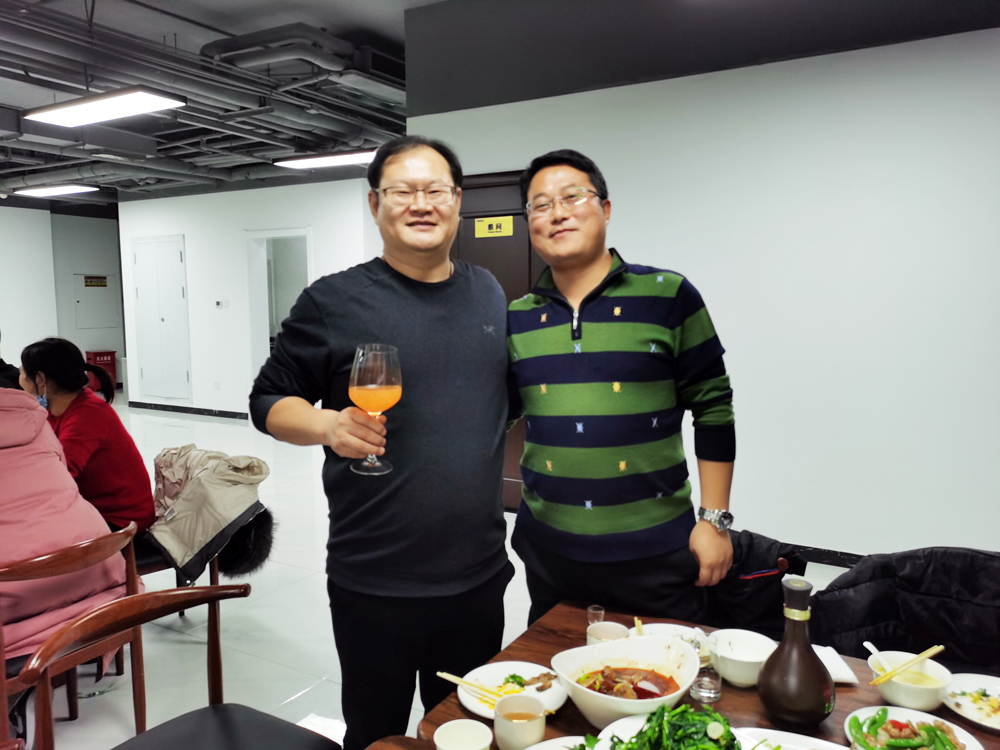 下午6:00,公司举办欢迎晚宴。图为郝立辉总经理和客户合影