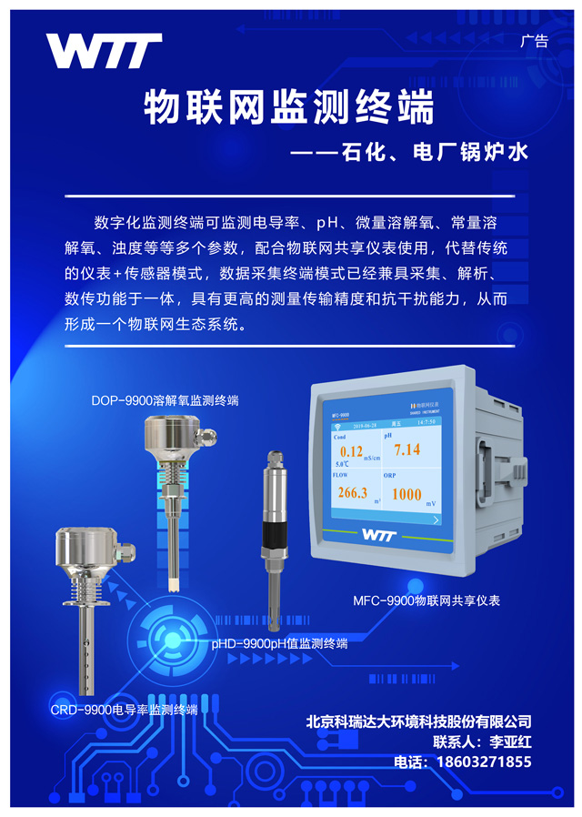 科瑞达仪器物联网监测终端系列可为中国石化行业工业过程各阶段提供监测电导率、pH、微量溶解氧、常量溶解氧、浊度等多个参数的监测仪器,配合物联网共享仪表使用,从而形成一个物联网生态系统。物联网数据采集终端模式已经兼具采集、解析、数传功能于一体,具有更高的测量传输精度和抗干扰能力。