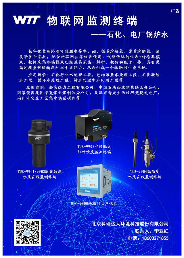 浊度监测终端加共享仪表应用场景:石化行业水处理工段,包括浓盐水处理工段、石化凝结水工段、循环水处理工段、污水处理中水回用工段等。