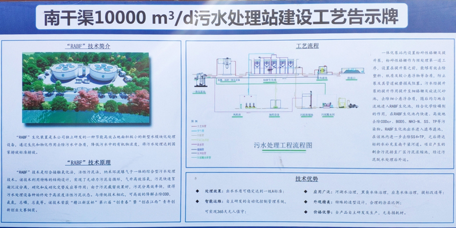 南干渠污水处理站位于广东省汕头市金平区沟南村,建筑面积1711m2,处理量10000m3/d,采用“一体化泵站+细格栅及沉砂器+RABF生化装置+滤布滤池”污水处理工艺,出水标准执行《城镇污水处理厂污染物排放标准(GB 18918-2002)》一级A标准,污水处理达标后补充至南干渠河道。
