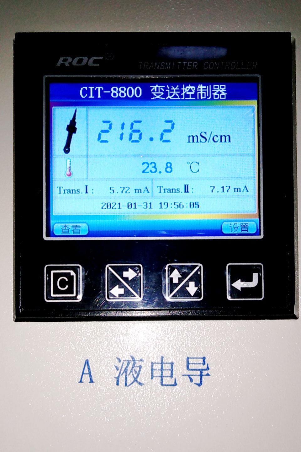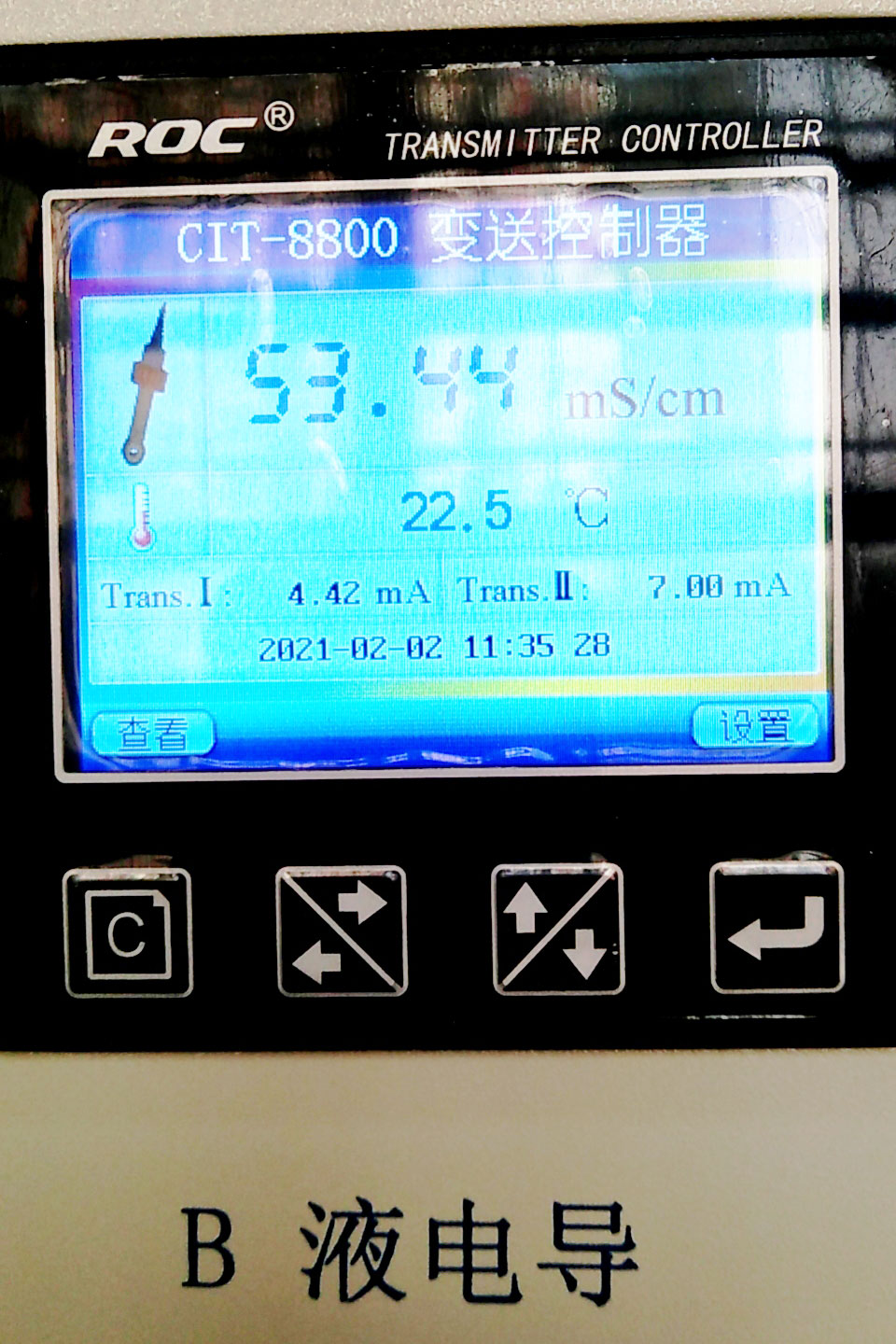 应用说明:科瑞达CIS-4051-00感应式电导率传感器,安装在肾病医院集中供液系统的A液系统、B液系统中,用于监测透析液体的电导率值;监测的A液体电导率值范围是210-230mS/cm,B液体的电导率值范围48-60mS/cm;当电导率值超出范围,CIT-8800控制器会发出报警。