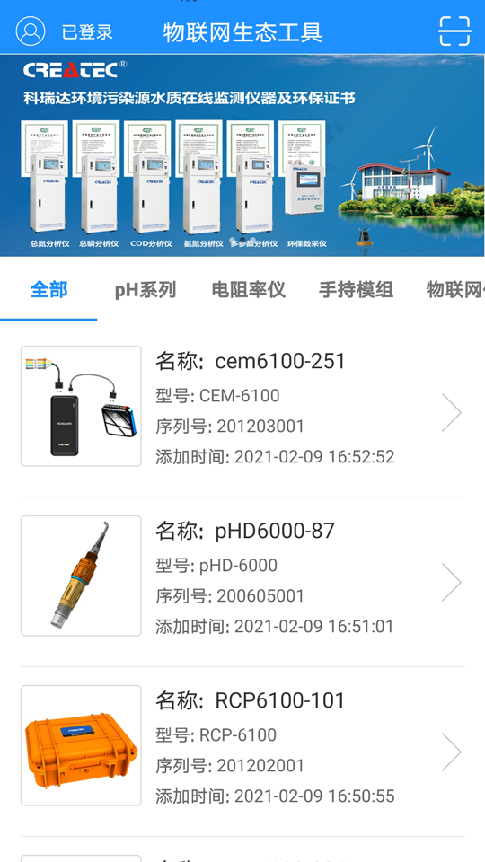 目前已完成三款设备的APP开发,分别是pHD-6000、便携式RS485-WIFI手持模组、RCP-6100便携电阻率仪。请使用APP中“扫一扫”功能,扫描下方对应二维码添加设备,请确认已通过有线或无线正确连接设备,连接成功后即可使用了。
