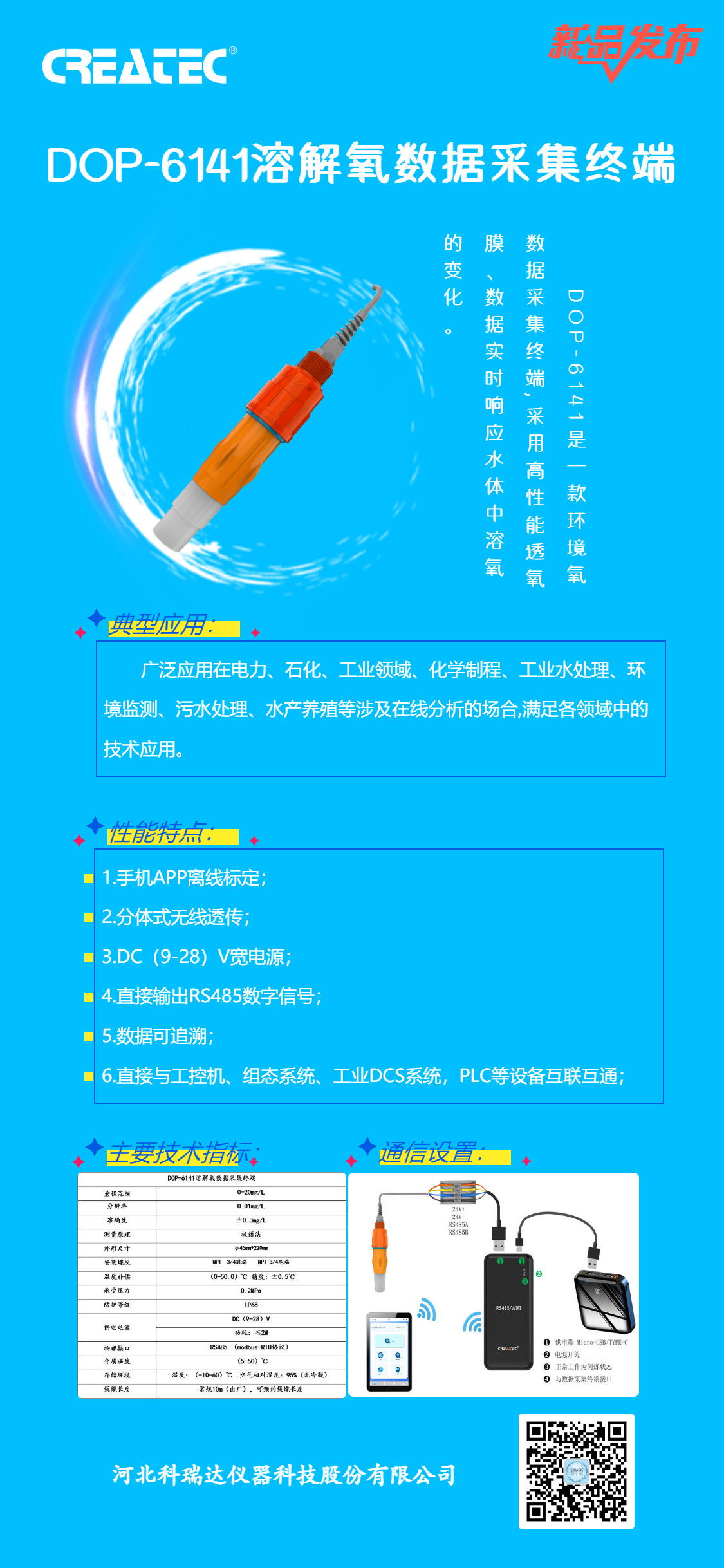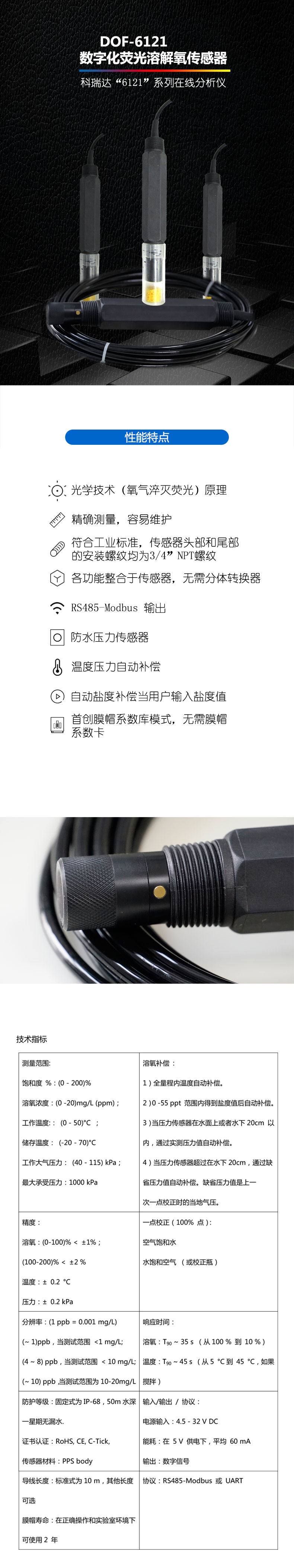 除此之外科瑞达仪器还有一款DOF-6121数字化荧光溶解氧(详细介绍见上图),更多应用于环境监测及污水处理厂水质检测。
