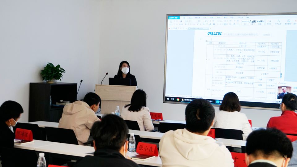 4月23日下午,销售部张耀明经理以PPT的形式讲解了环境在线分析仪器及余氯在线分析仪的原理、组成、主要功能等。