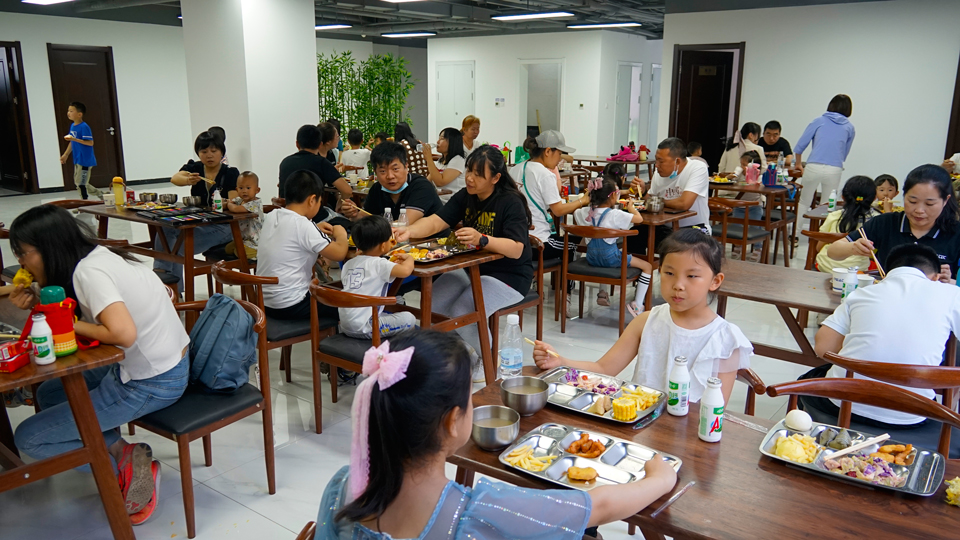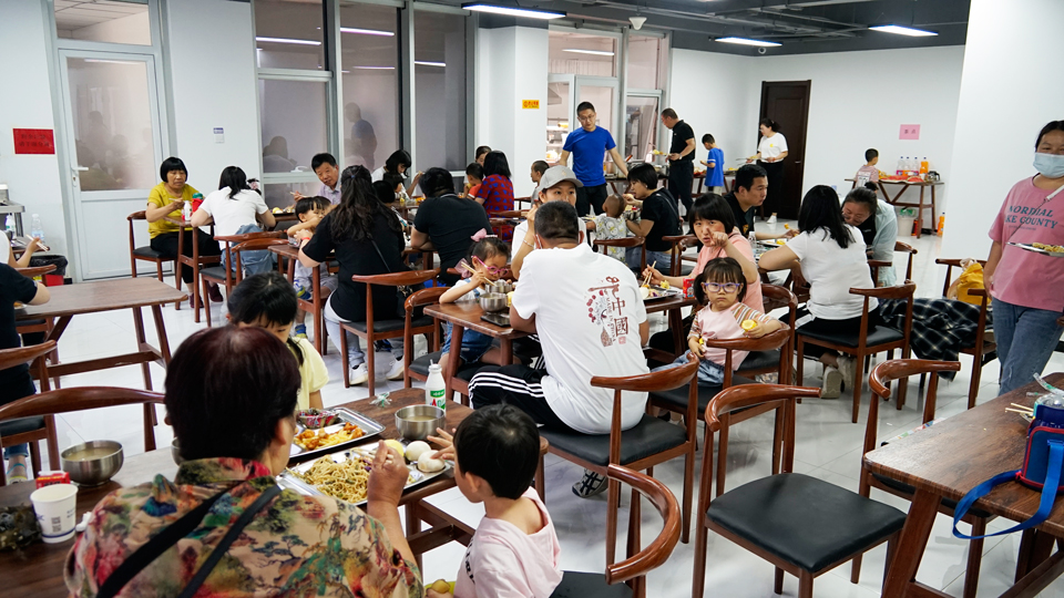 11:15,亲子运动会所有项目比赛结束,评选出一等奖曹丽倩家庭、二等奖程丽家庭、三等奖陈亮枝家庭,由董事长郝拴菊、总经理郝立辉、销售总监杨韶山分别进行了颁奖,并为其他家庭颁发了纪念品。11:30,运动会在欢声笑语中结束。运动会结束后,公司餐厅为大家准备了丰盛的午餐。