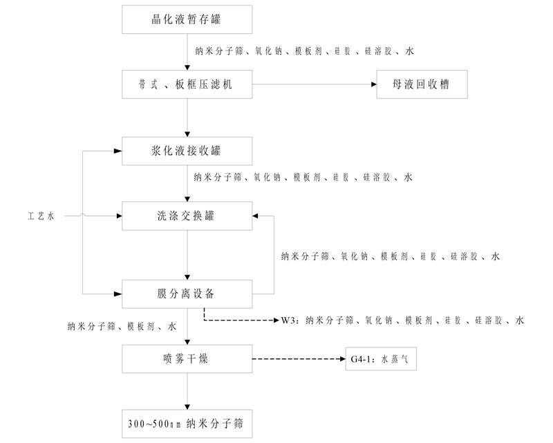 山东荣创催化新材料有限公司年产3000吨催化新材料项目,含2条纳米分子筛生产线,主要设备为锅炉、晶化罐、闪蒸干燥等设备,生产废水预处理后、冲洗废水、真空泵废水、循环冷却水、初期雨水经污水处理站处理后,回用于车间清洗、真空泵用水、冷却循环水。