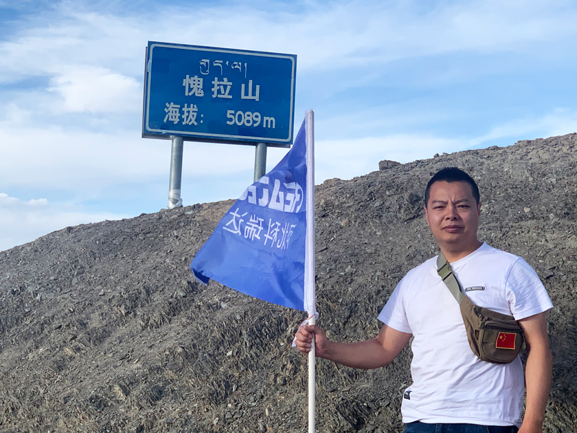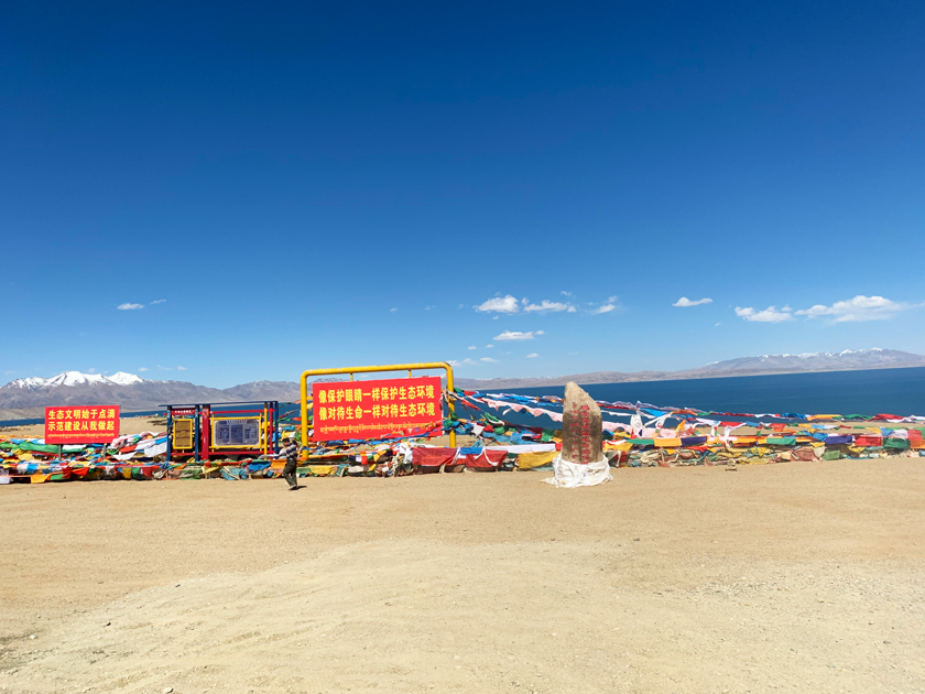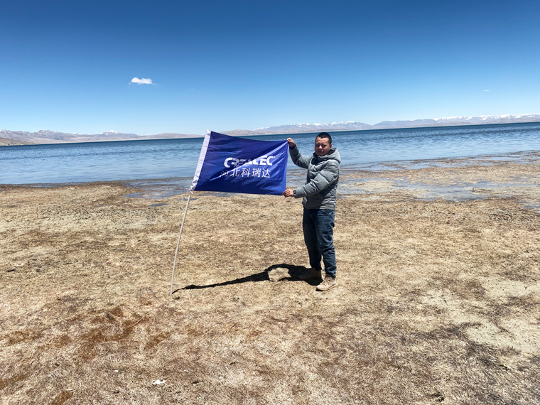 科瑞达的旗帜在4588米圣湖——玛旁雍措飘扬。西藏三大圣湖之首,背靠神山.冈仁波齐峰。