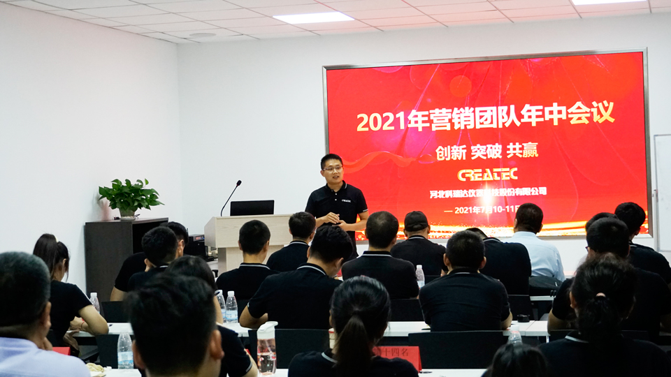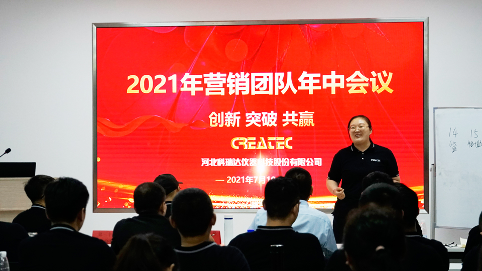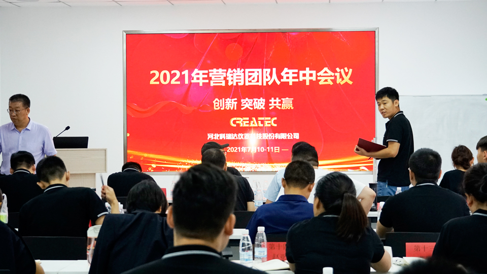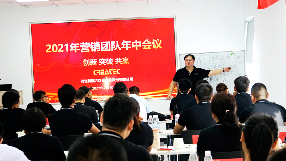 “创新 突破 共赢”——2021年7月9日-7月11日,河北科瑞达仪器科技股份有限公司2021年度营销团队年中会议在石家庄总部举行,大家一起汇报总结各自2021上半年的工作成绩、共同商讨如何在下半年实现业绩翻番。