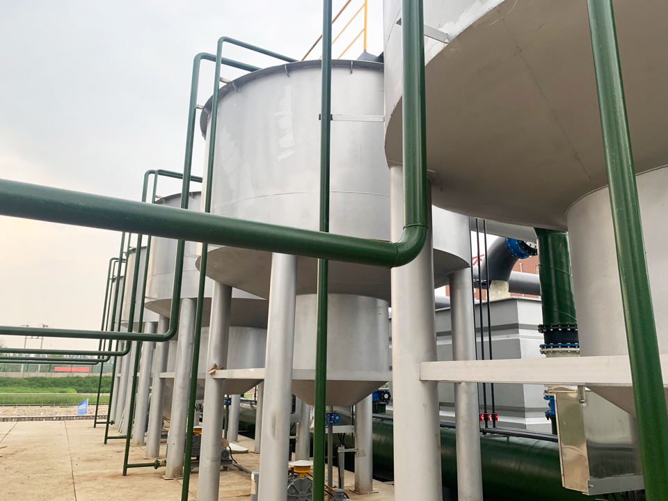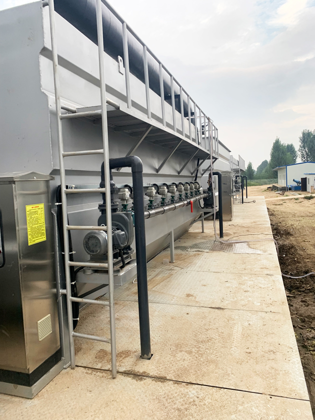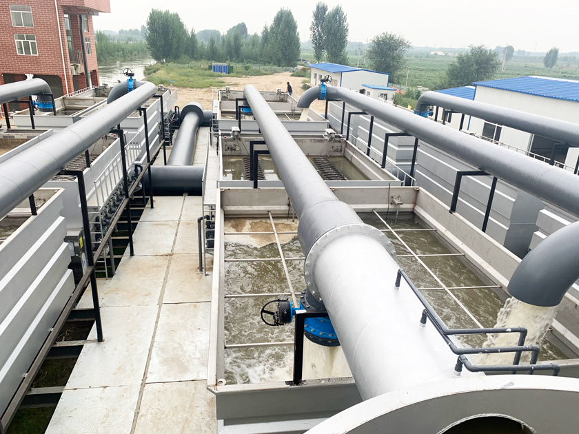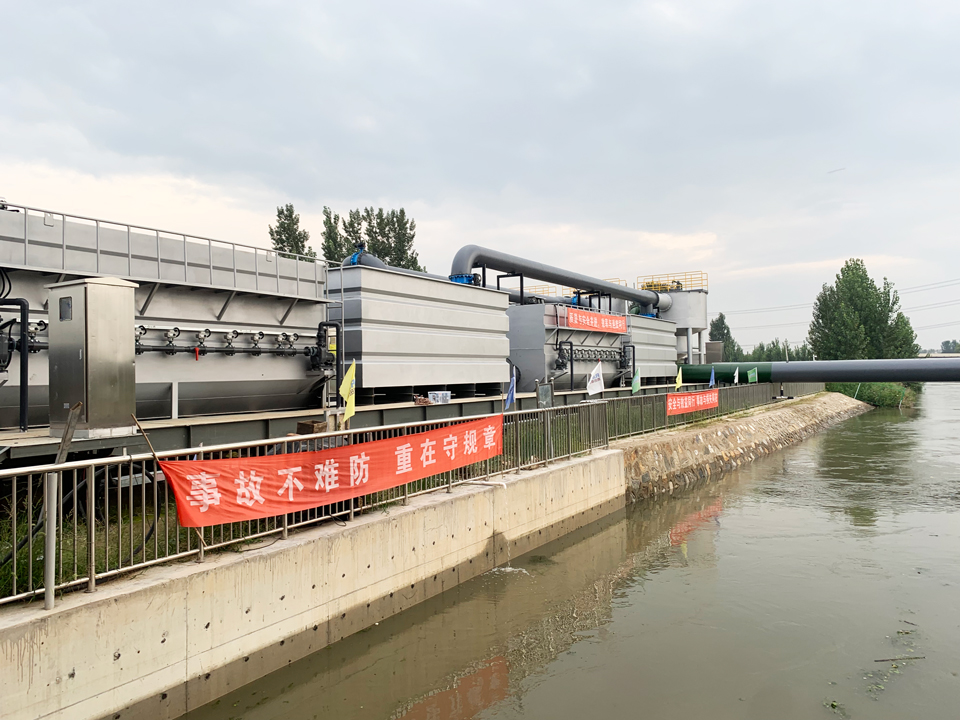 保定市府河河水自流到木欠庄泵站网笼,由提升泵将河水从集水池提升到水处理设备;经过水质净化设备后,被分离的清水通过中心桶后直接进入府河;当府河上游水质监测数据达标后,解除预警,府河达标水质直接进入下游。