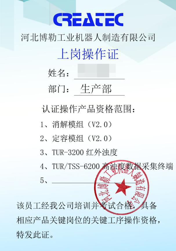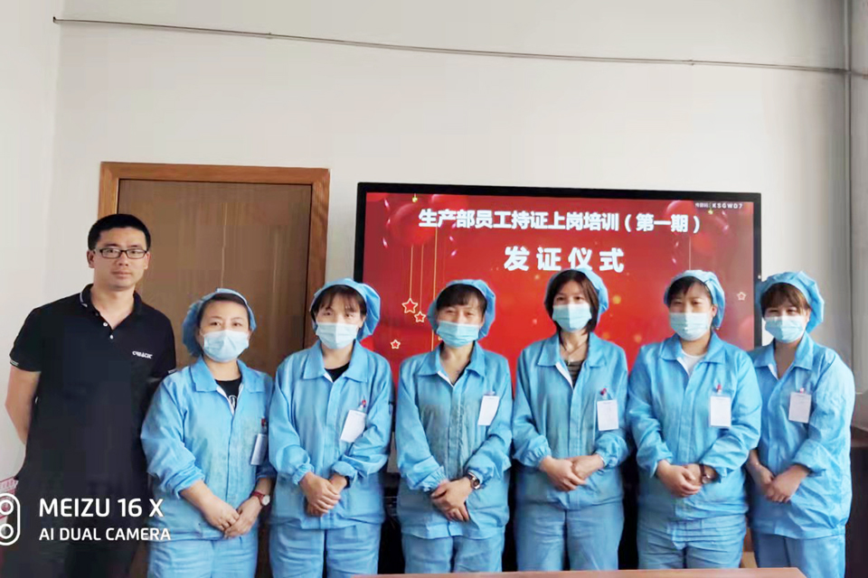 为提升企业操作人员专业技术水平,规范关键工序的操作,公司在2021年9月份组织第一批员工持证上岗培训和考试。9月30日下午,人力资源部协同工艺部王经理组织了持证上岗证的颁发仪式。