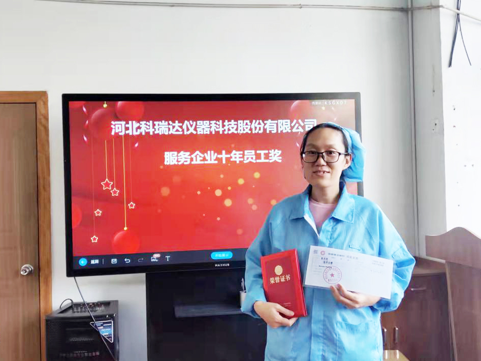 同时,生产部米经理代表公司对入职满十年的员工靳英霞女士授予荣誉证书,并颁发奖金,以表达对员工努力工作、辛苦付出的感谢!