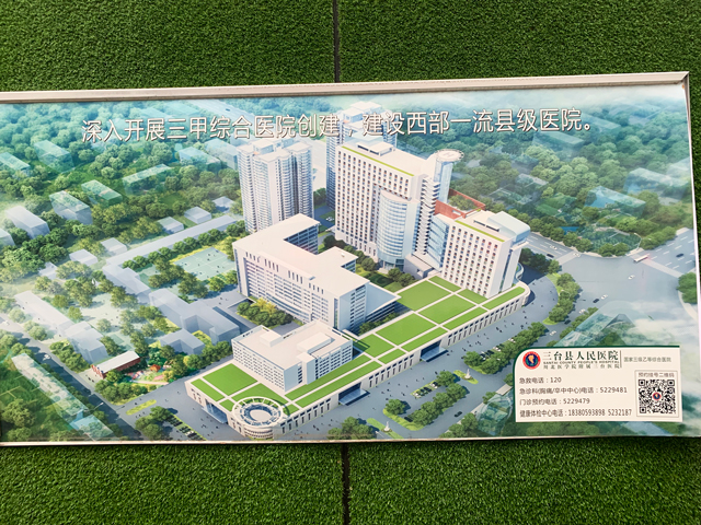 三台县人民医院位于四川省绵阳市三台县潼川镇解放下街139号。其前身是英国教会创建于1902年的“仁慈医院”和建立于1942年的“三台县卫生院”,历经百年风雨沧桑,三台县人民医院现已发展成为一所集医疗、教学、科研、康复、预防、保健为一体的国家三级甲等综合医院。
