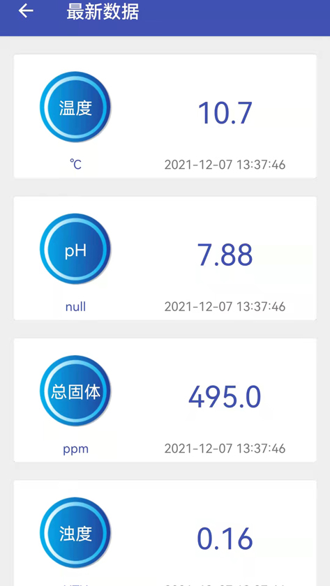 科瑞达仪器MWA-1400水质多参数在线分析仪在两个自来水厂各安装一台,检测自来水厂水质的pH、电导率、激光浊度、温度、DPD余氯五参数值。自来水厂运维商可以通过科瑞达水质监测管控平台(CMCP)PC端或APP端进行数据监管。
