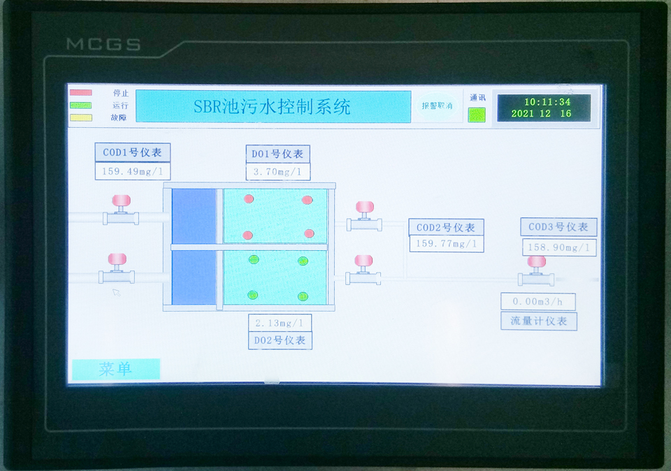 科瑞达仪器3台COD在线分析仪、2台溶解氧在线分析仪配套MFC-8800物联网仪表分别安装在厂区SBR池污水控制系统的各工艺节点,实时在线监测对应的指标。