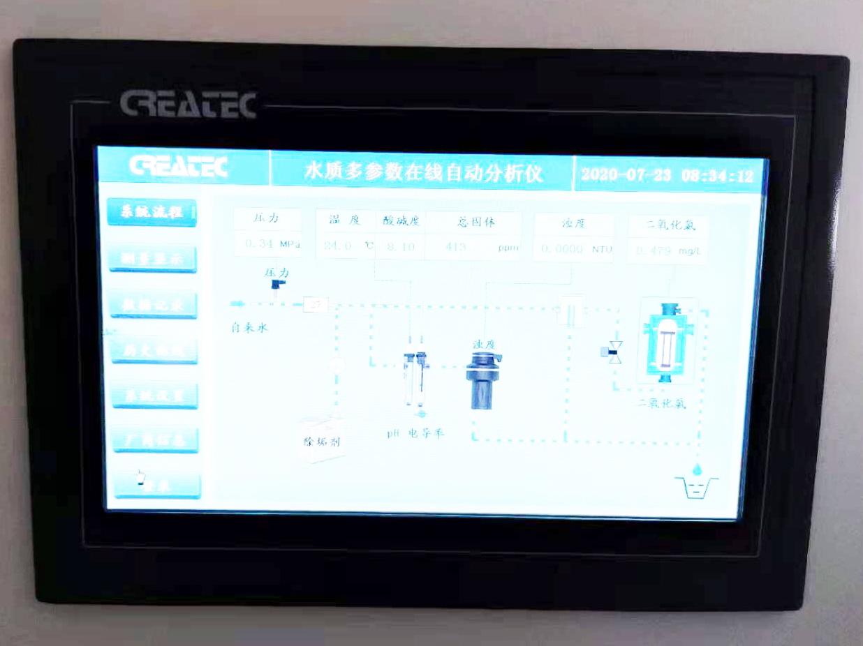 科瑞达仪器MWA-1400水质多参数在线分析仪在两个自来水厂各安装一台,检测自来水厂水质的pH、电导率、激光浊度、温度、DPD余氯五参数值。自来水厂运维商可以通过科瑞达水质监测管控平台(CMCP)PC端或APP端进行数据监管。