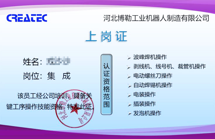 本次上岗证按照员工技能项认证数量不等进行颜色区分,激发员工学习操作技能的热情,实现“一人多能”“一人多岗”的目标。
