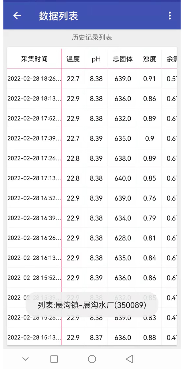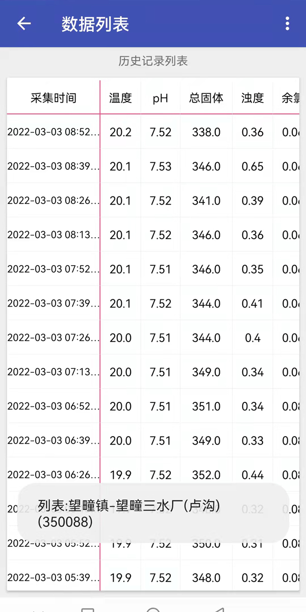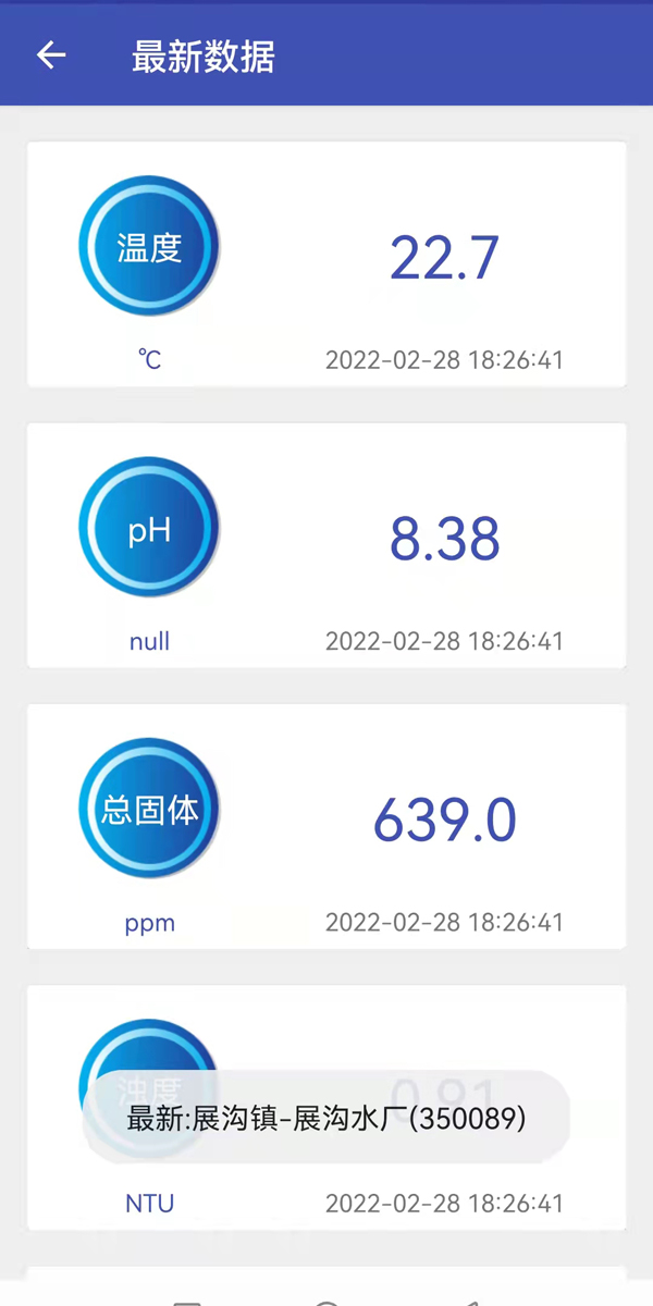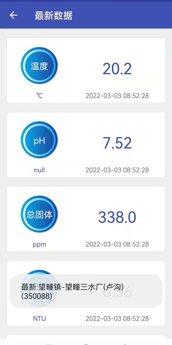 科瑞达水质监测管控平台(CMCP)APP端数据: