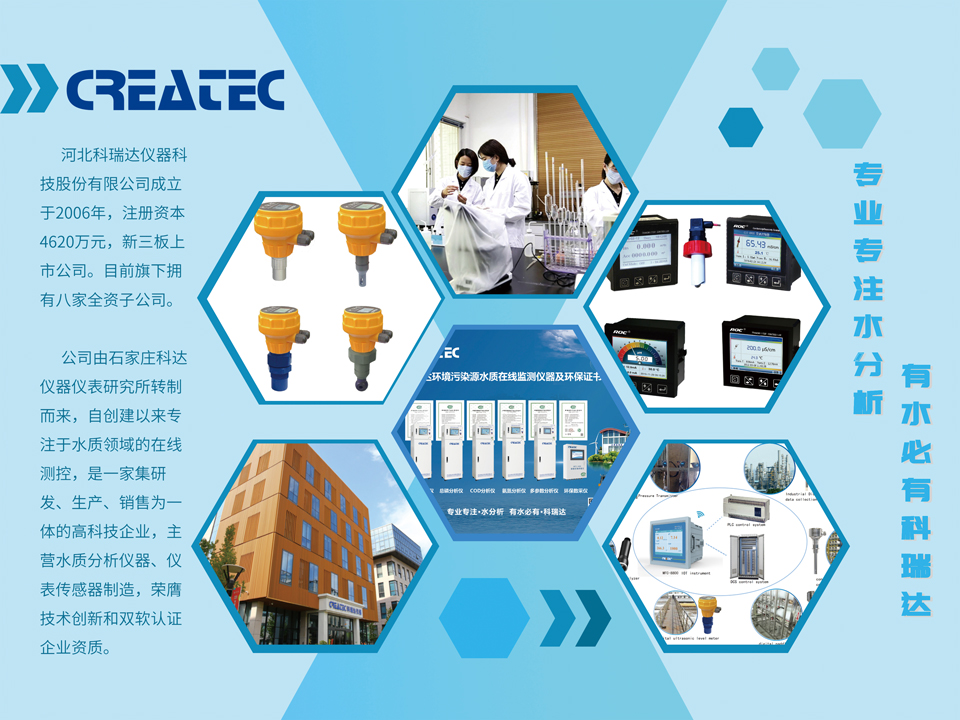 河北科瑞达仪器科技股份有限公司立足水质在线分析传感器和科学仪器为核心,先后开发出物理、化学、电子、电化学、光学、光化学等一系列技术手段的产品序列,打破发达国家垄断、每年向国内外的工业制程、水文、市政、医疗、制药、环保水监、污水处理等输送大量的高精尖产品替代进口。