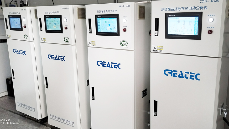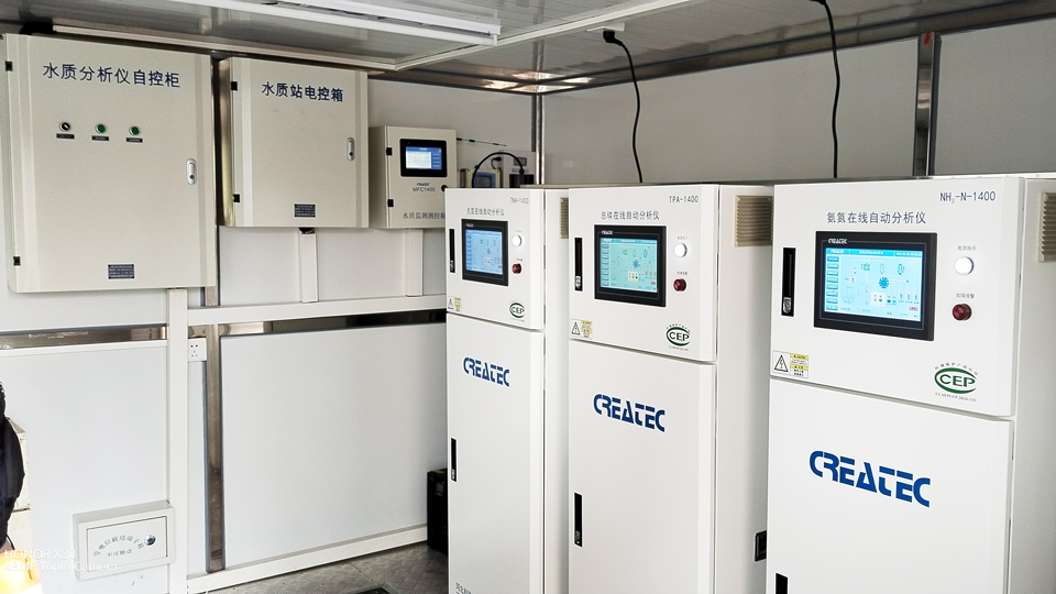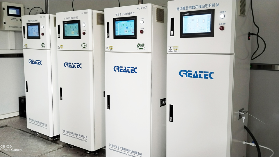 科瑞达仪器高锰酸盐指数在线分析仪、氨氮在线分析仪、总磷在线分析仪、总氮在线分析仪、pH在线分析仪安装在水质在线监测站房内,用于在线监测河道水所对应的指标。