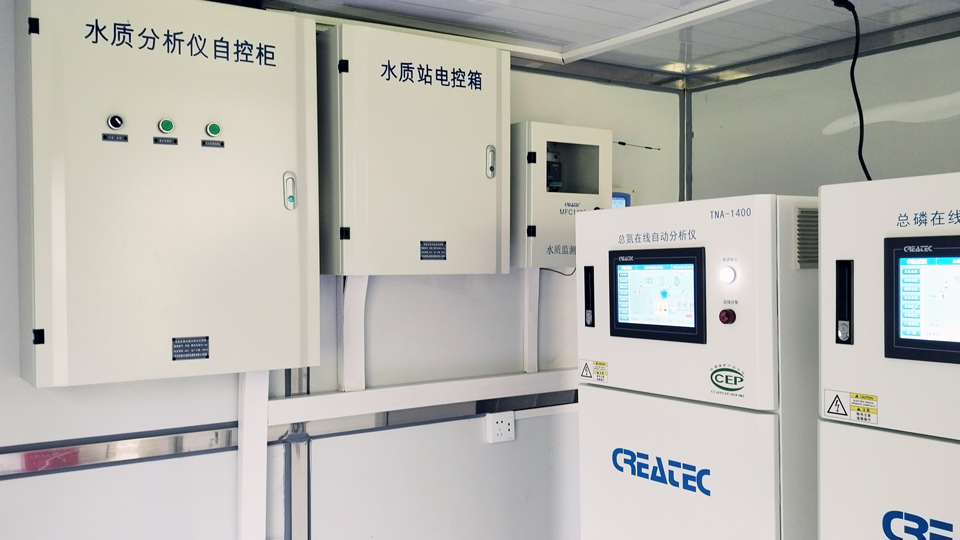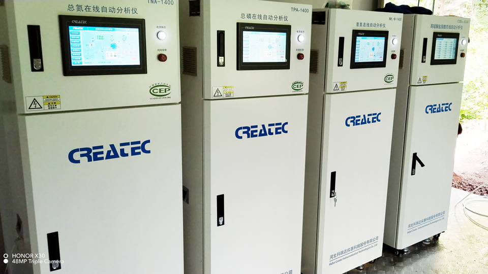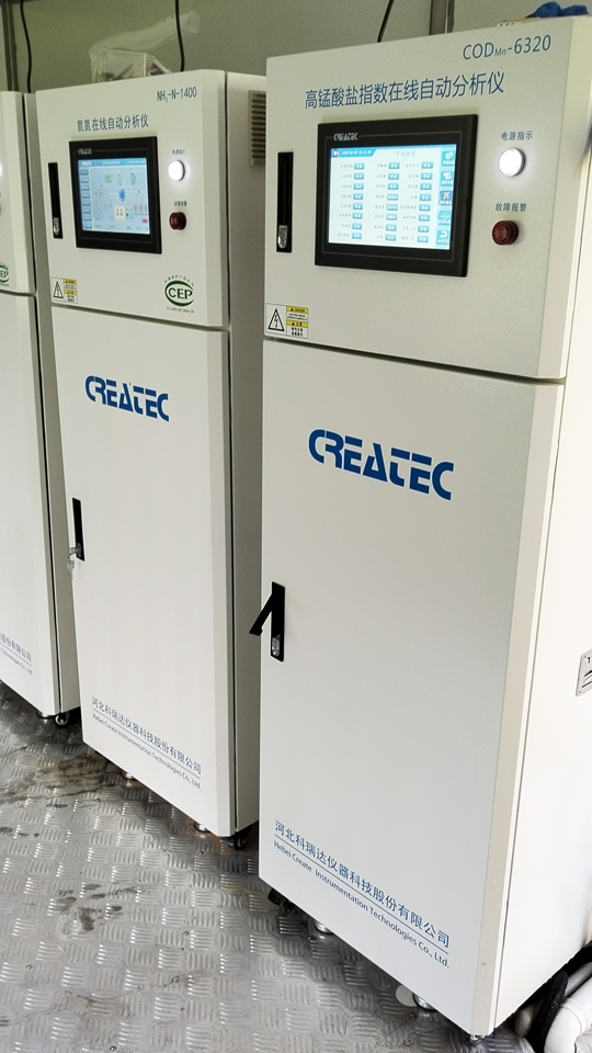 科瑞达仪器高锰酸盐指数在线分析仪、氨氮在线分析仪、总磷在线分析仪、总氮在线分析仪、pH在线分析仪安装在水质在线监测站房内,用于河道水的在线监测。