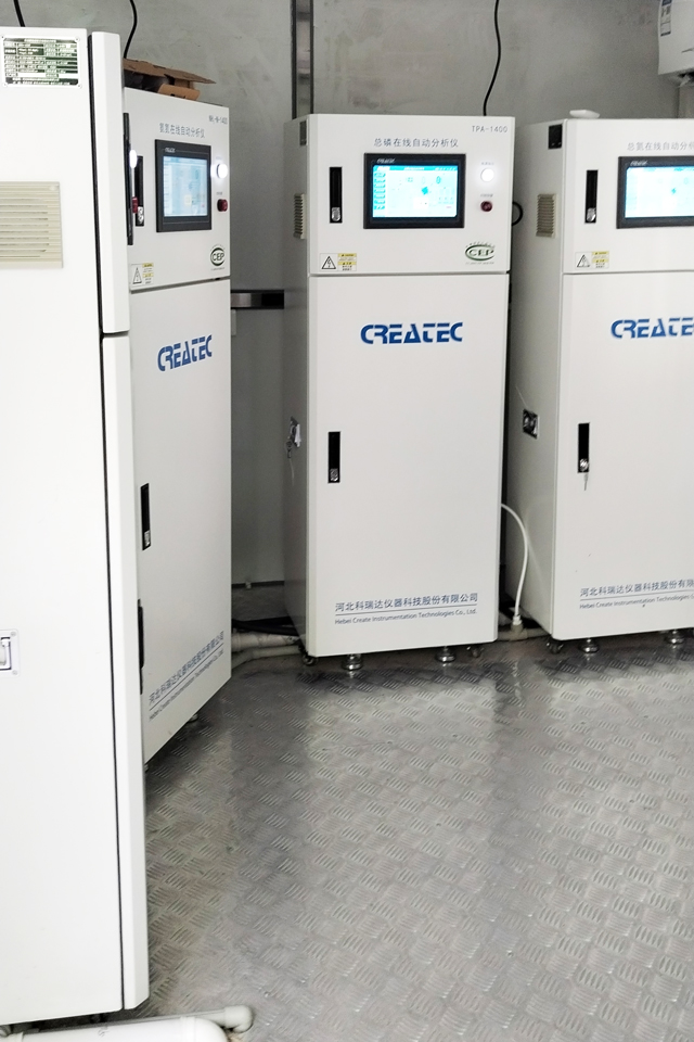 科瑞达仪器高锰酸盐指数在线分析仪、氨氮在线分析仪、总磷在线分析仪、总氮在线分析仪、pH在线分析仪安装在水质在线监测站房内,用于河道水的在线监测。