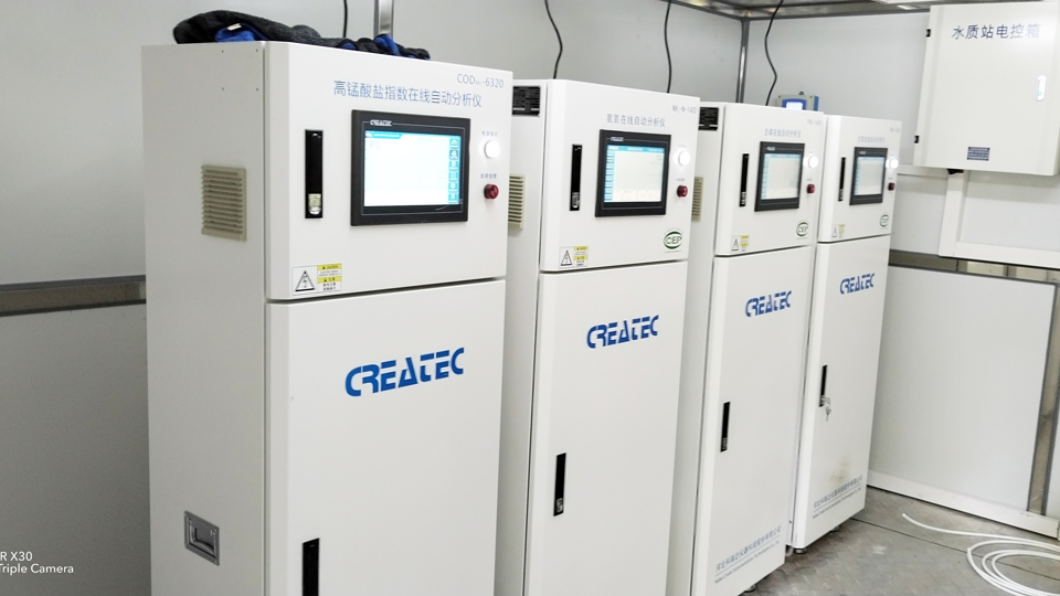 科瑞达仪器高锰酸盐指数在线分析仪、氨氮在线分析仪、总磷在线分析仪、总氮在线分析仪、pH在线分析仪安装在水质在线监测站房内,用于河道水的在线监测。