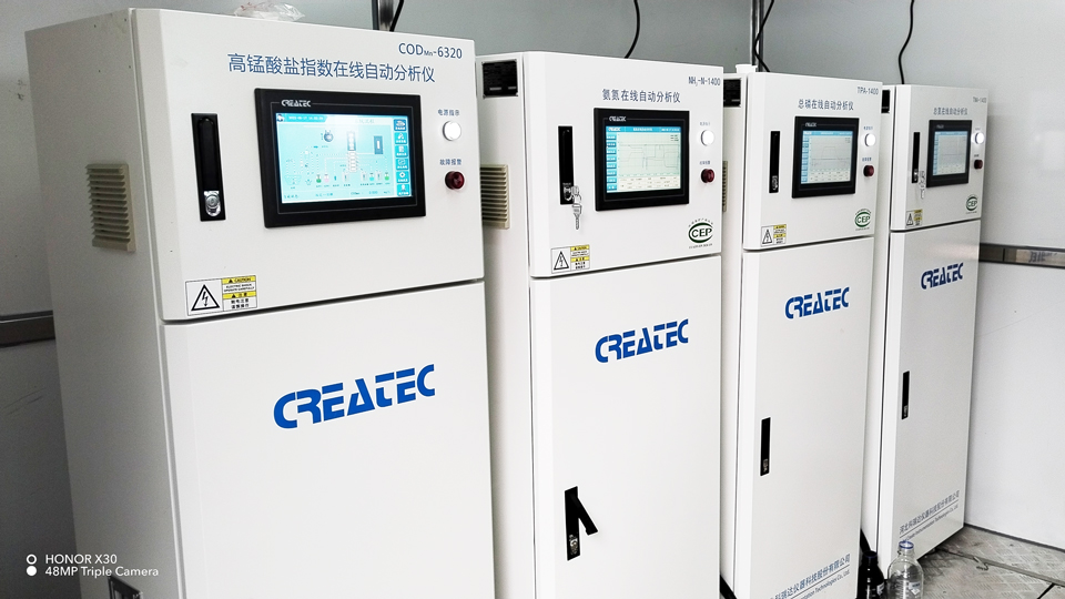 科瑞达仪器高锰酸盐指数在线分析仪、氨氮在线分析仪、总磷在线分析仪、总氮在线分析仪、pH在线分析仪安装在水质在线监测站房内,用于河道水的在线监测。