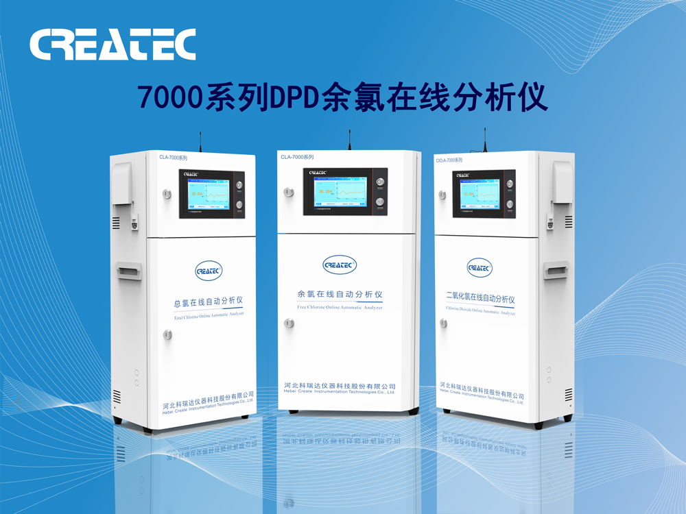 DPD余氯在线分析仪由MCA-1200(DPD)在线分析仪升级成7000系列,检测余氯、总氯、二氧化氯3个指标的对应型号分别是CLA-7000余氯(DPD)在线分析仪、CLA-7000总氯(DPD)在线分析仪及ClO2A-7000 系列二氧化氯(DPD)在线自动分析仪。