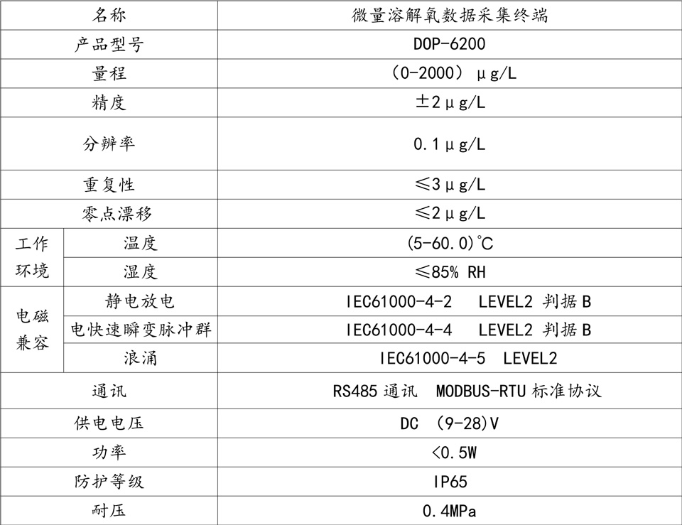 DOP-6200 微量溶解氧数据采集终端的主要技术指标