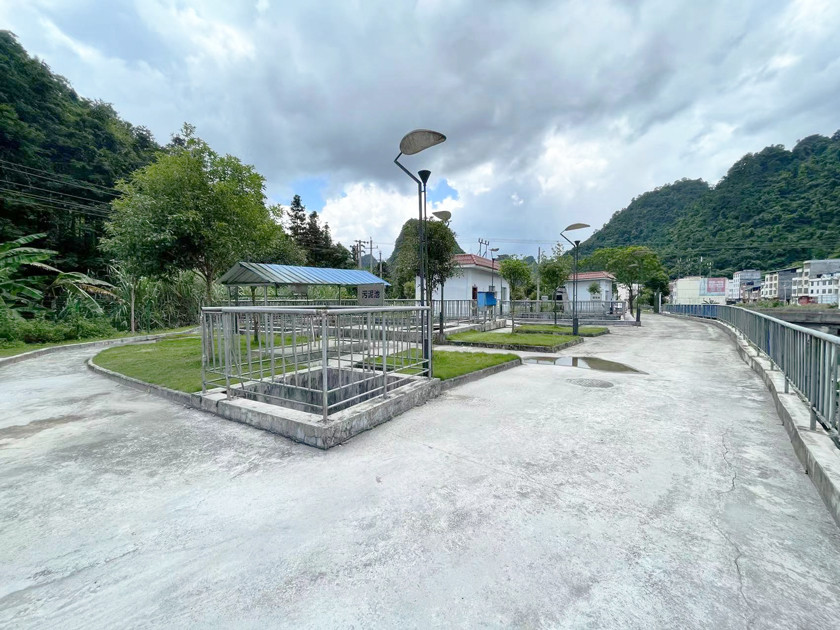 广西河池市金城江区九圩镇污水处理厂,位于河池市金城江区九圩镇九圩社区。污水处理厂占地3亩,设计日处理污水量500吨,配套建设收集污水管网设施6900米。