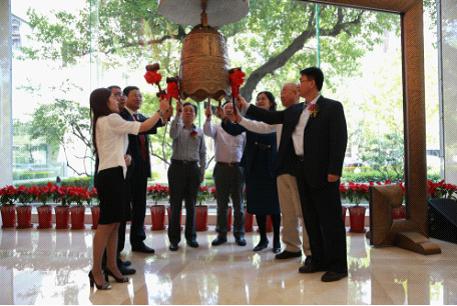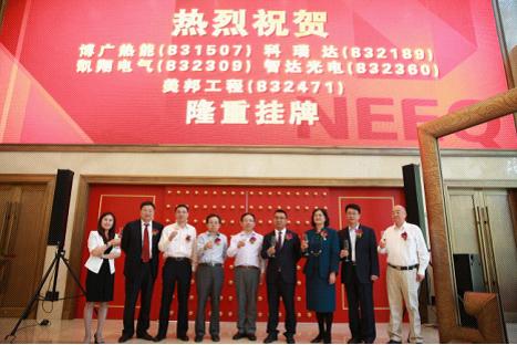 下午14:20五家企业共同敲响了开市宝钟,开启了财富大门,并举杯共贺挂牌成功。石家庄高新区管委会主任吴时茂祝贺五家企业成功挂牌,对高新区企业的发展充满信心,同时鼓励各大企业科技创新,发展经济,充分利用好新三板的资本市场。