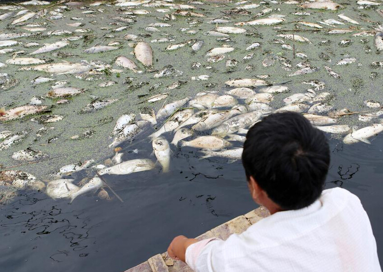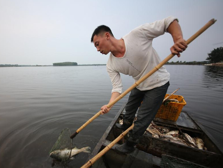 自6月24日,安徽省蚌埠市地区连续降水一周,受上游排水下泄的影响,7月1日开始,怀洪新河流域下游张家湖湖水水质变黑变臭,鱼蟹一夜之间漂满湖面,渔民受灾惨重。当地渔民称,成批鱼蟹死亡的原因可能是麦秸秸秆腐烂导致,因当地村民将麦秸秸秆堆放在田间地头的水渠之中,连日降雨,水渠内的麦秸秸秆长时间腐烂使水质变黑发臭,持续降水引发臭水污水流至张家湖湖内,使湖水水质恶变超标,大量鱼蟹死亡。