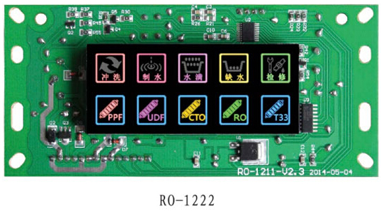 适用于家用反渗透( Reverse Osmosis)净水器的电子化控制,内置RO净水器的运行和耗材管理程序,使用LED 显示RO机的运行状态。