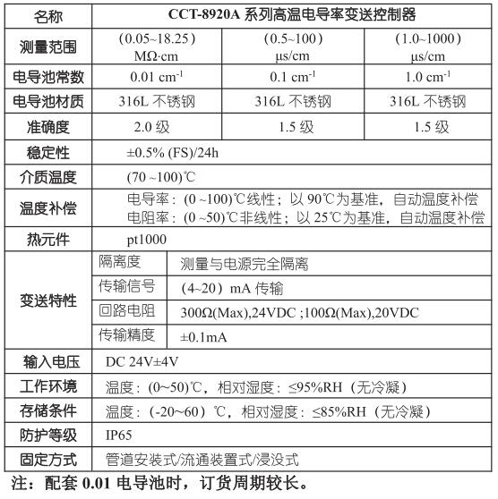 CCT-8920A 高温电导率变送控制器