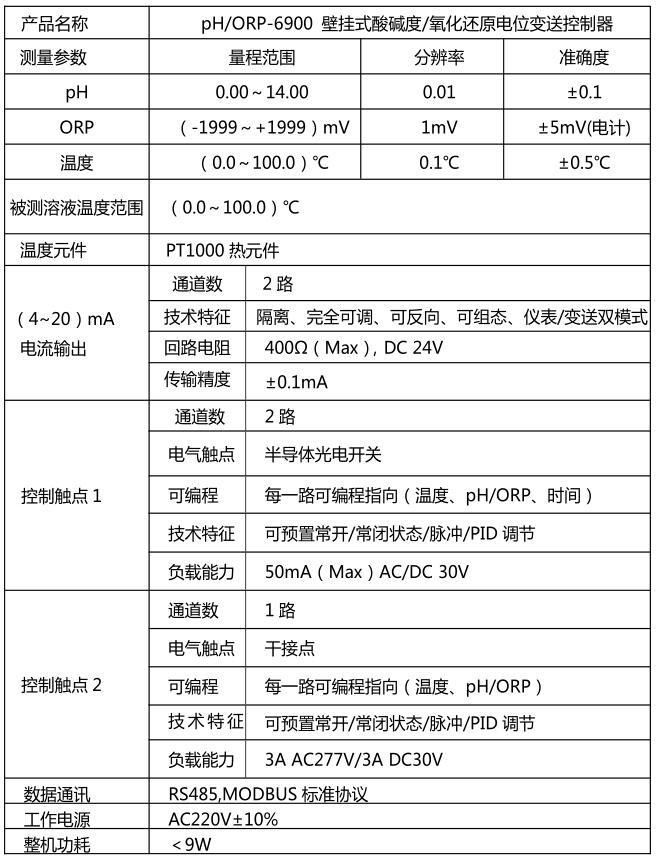 pH/ORP-6900 壁挂式酸碱度/氧化还原电位变送控制器是一款集 pH/ORP/温度测量于一体的高精度、高性价比的仪表,以 32 位 ARM 处理器为核心的强大内核与操作系统,使得信息处理速度和测量精度准确且稳定,采用大型彩色屏幕,以科学的流程设计,模块化的安装方式适应了多种环境的应用。
