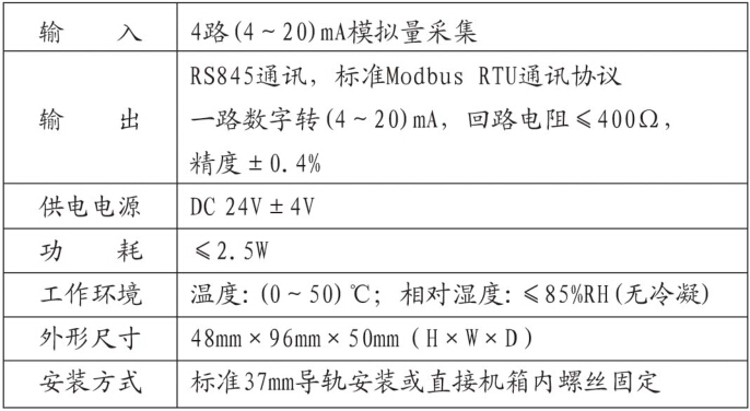 1、(4~20)mA输入转RS485通讯集中总线发送;