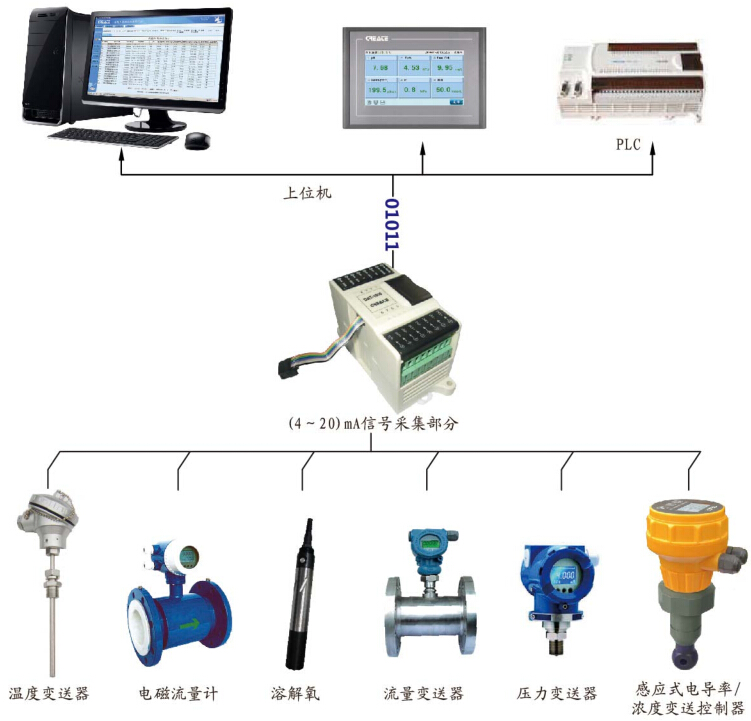 采用RS485 Modbus rtu标准通讯协议,可与PLC、HTM人机界面等进行组网。广泛用于工业现场设备的模拟量信号转数字量信号的采集与数字转模拟输出。
