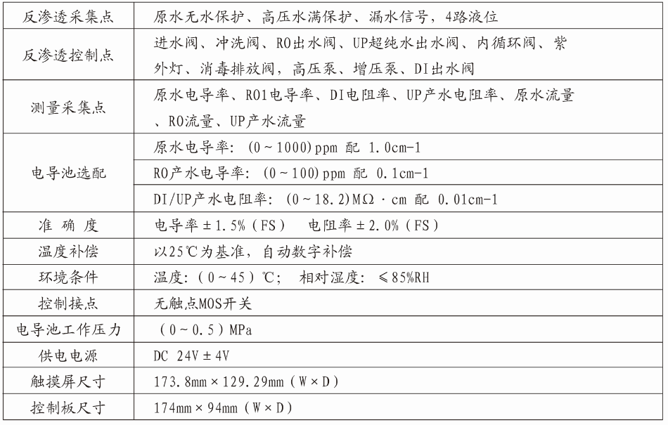 实验室高纯水制备系统的核心电脑版,是一款以自来水或蒸馏水为水源的反渗透程序控制器,系统内部嵌入了多路水质电导率/电阻率、流量分析测量单元和纯水机运行控制程序,集成耗材管理。适用于实验室反渗透(Reverse Osmosis)净水器的电子化控制,内置R0净水器的运行程序,使用触摸屏显示R0机的运行状态