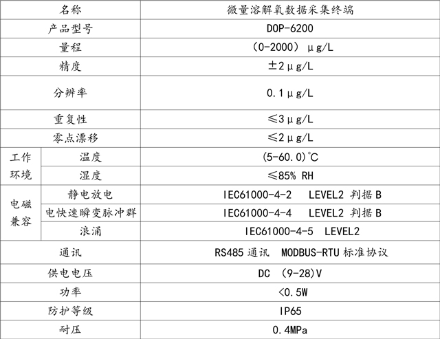 1、通体由钛金属及不锈钢 316L 组成,具有更高的电磁兼容和环境适用性; 2、传感器内嵌电源管理、测量解析、通讯等微封装芯片; 3、精准的极化电压输出,保证了溶氧传感器的测量准确度; 4、高阻抗,低噪声的溶氧采集电路,搭配高分辨率模数转换器,完成溶氧的实时采集转换; 5、内置 Pt 温度元件,实时采集温度对溶氧测量值进行实时温度补偿; 6、DC(9-28)V 直流供电,避免因线路压降引起无法工作; 7、RS485 输出,符合标准 Modbus-RTU 协议。可直接与工控机、PLC 等任意一种符合 Modbus-RTU 格式的通讯设备构成采集系统; 8、采用航空插头连接,方便拆卸维护。